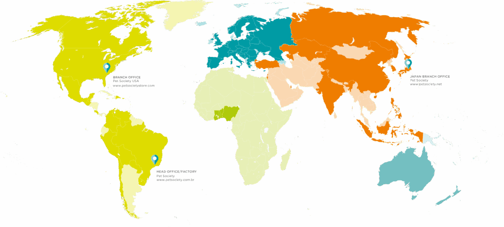 The company has branches in Florida (USA) and Tokyo (Japan), and currently exports its products to over 70 countries, becoming a global reference in the pet care market.